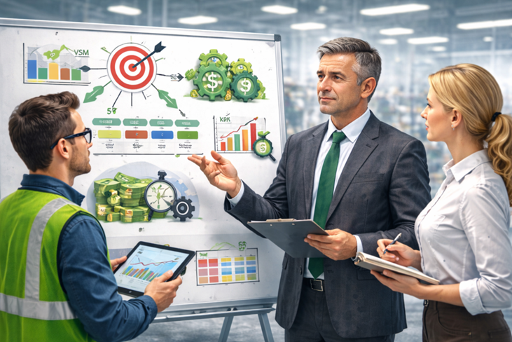 Частая ошибка — ставить цели «по инструментам»: сделать 5S, нарисовать VSM, запустить KPI.